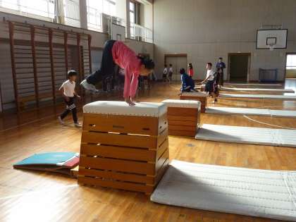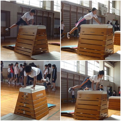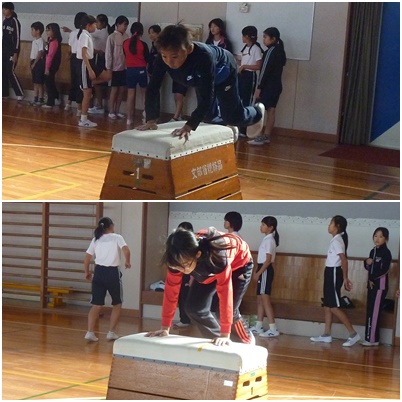 跳び箱を練習する5年生。