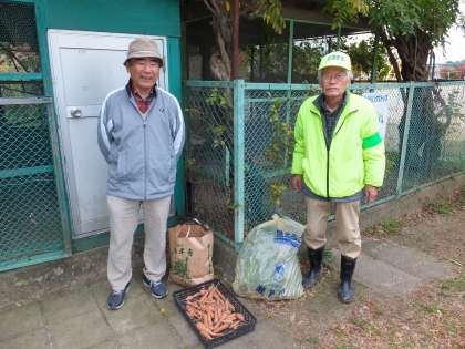 先日2年生がさつまいも掘りをした畑で、地域の方がニンジンを育てていたようで、今日はそのニンジンの中で小さなものを、
