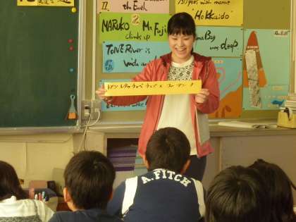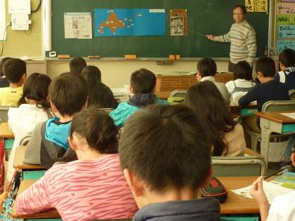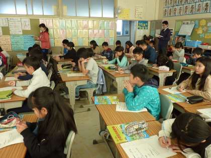 北海道についてのミニ授業を受ける4年生。