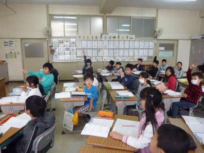 算数の復習問題を解いている3年生。