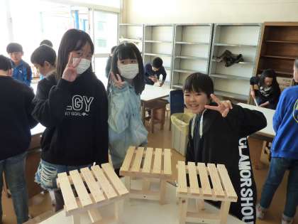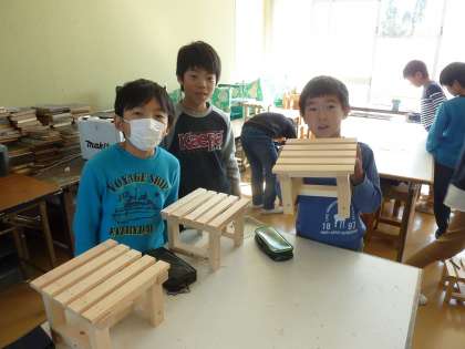 踏み台作りは、ノコギリや金づちを使って頑張りました。