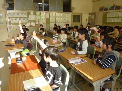 と想像力を働かせて考え、それがどんな道具なのかをみんなに伝える授業です。
