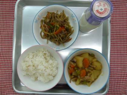 麦ごはん・肉じゃが・きんぴらごぼう・牛乳でした。