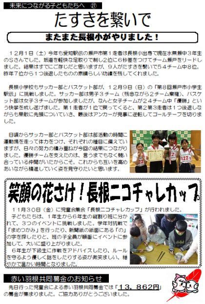 瀬戸市内小中学校 長根小学校所在地 後援事業配布チラシ(瀬戸市教育委員会)