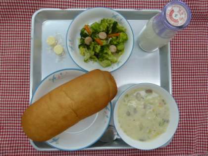 ロールパン・白菜とかぶのシチュー・ブロッコリーのサラダ・キャンディチーズ・牛乳でした。