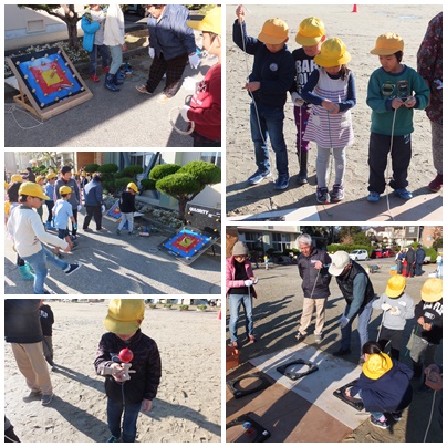 焼けるのを待っている間に、こま回しに、お手玉、けん玉、わなげ…。