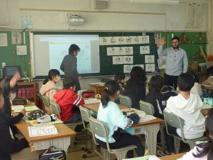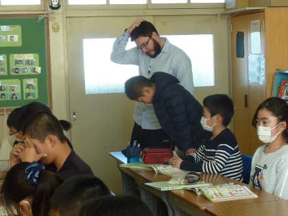 ALTの先生は、発表する子に寄り添ってサポートしてくれます。