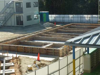 寒くなってきましたが、工事現場のみなさんのご努力で、着々と校舎・バックネットの建設が進んでいます。
