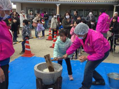 今日は、ふれあいセンター連で、毎年恒例のもちつき大会がありました。