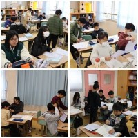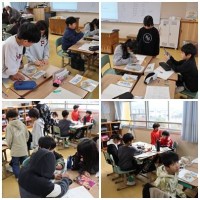卒業式まであと2日となりました。タブレット端末の更新作業をしたり、答えから3つのヒントを考えて、それをカルタのようにして遊びゲームをしたり、ある法則に沿って数字を書いていき、隣の友達と交換して線つなぎをしたりするなど、どのクラスも楽しく過ごしています。