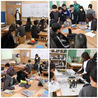 完成した作品の写真を撮って、タブレットを使って共有しました。友達の作品を観て、コメントを入れています。自分の作品にみんなからのコメントが増えていくのでうれしくなります。
