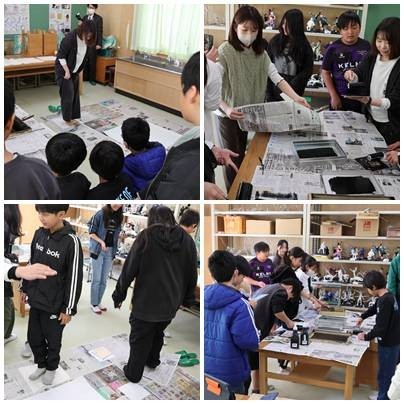 版画作品コンクールに向けた作品づくりを始めました。瀬戸市独自の文化でもある「石膏版画」に取り組みます。テーマは動物です。かきたい動物とポーズを考えました。