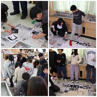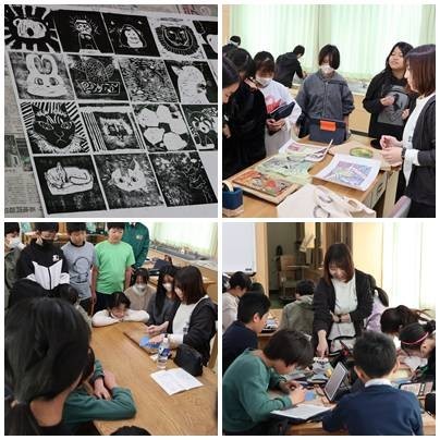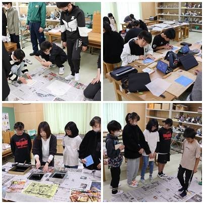 「せとドリームプラン事業」として、瀬戸市出身の画家である田口薫さんをお呼びし、版画のワークショップを開催しました。「今一番好きな○○」というテーマで木版画に取り組みました。好きなものだからこそ、こだわって楽しんで彫っていました。本物のアーティストの方に褒めてもらえるので余計熱が入ります。足で踏んで刷るという普段とは違う刷り方も楽しいものです。大きな一枚の絵にみんなの版木を並べて刷り、クラスの共同作品ができあがりました。