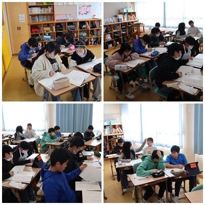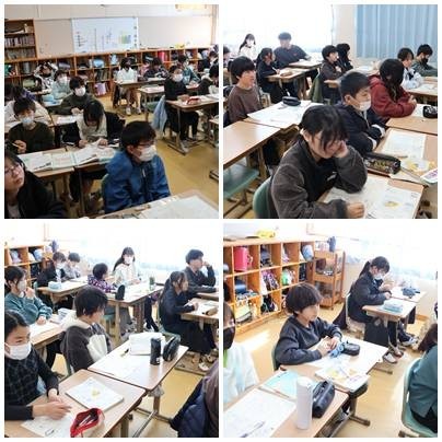 これまでの学習を思い返しながら復習に取り組み、計算の手順や考え方を落ち着いて確かめました。問題を解く中で自分の弱点や気付きを見つめ直し、卒業に向けて学びを丁寧に積み重ねていきました。