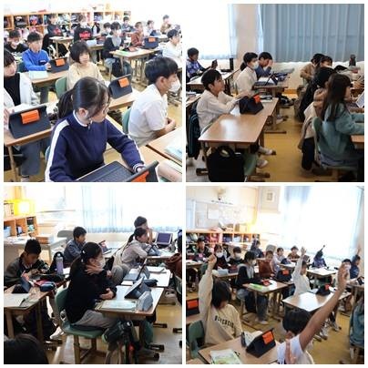小学校に入って1年、できるようになったことをタブレットに入力し、みんなで共有しました。友達のカードを読んだ子から「おー!」「いいねえ!」という明るい声が自然にこぼれ、互いの成長を喜び合う時間になっていました。