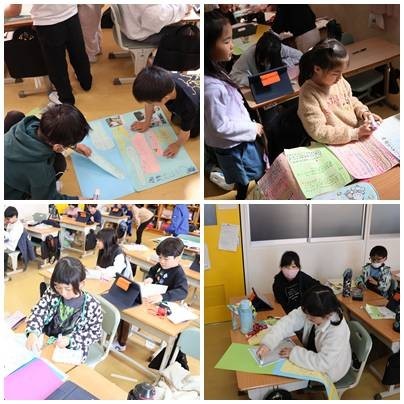 季節ごとに出会った生き物をふりかえり、生き物図鑑を作ります。見つけたときのことを思い出しながら、選んだ生き物の魅力を自分の言葉でまとめていました。