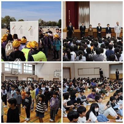 令和8年1学期始業式、444人の1年の始まりです。新しい学年を迎え、どの子もやる気に満ちた表情が見られます。