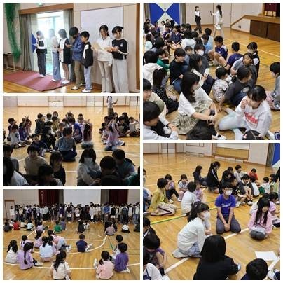 1年生を迎える会が開かれました。会の司会や進行を務めたのは6年生です。1年生が安心して楽しめるよう会を進めていきました。学校クイズでは、1年生が楽しみながら学校のことを知り、校歌では6年生の伸びやかな歌声が体育館に響きました。