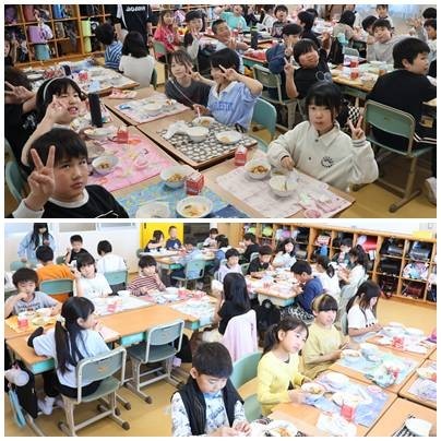 今日から2~6年生は給食が始まりました。最初の日のメニューは大人気のマーボー豆腐。特別にさくらゼリーもついていました。新しいクラスの仲間とおいしく食べました。
