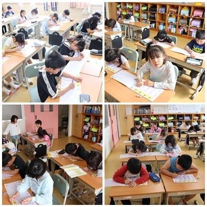 漢字の学習に取り組んでいます。2年生では、1年生のときのちょうど倍、160字の漢字を学びます。早いうちにしっかり覚えておきたいものです。