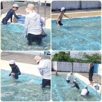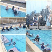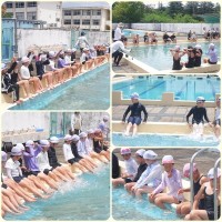 5年生は水泳学習です。 梅雨入りした中での貴重な時間です。最初は「冷たい…」と言っていた児童も次第に笑顔で活動していました。 節浮きからクロールとつなげる練習をしていました。