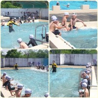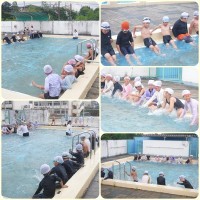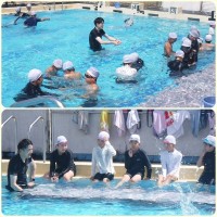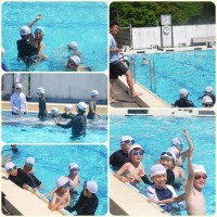 5・6年生は合同で着衣泳の講習を行いました。 水難学会から講師をお招きし、最初にガイダンスを受けた後、実際にプールにて体験です。 服の重さを実感できたところで、「浮いて待て」の練習です。何かあったとき...