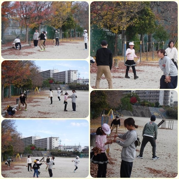 最後は落ち葉と触れ合って楽しみました。