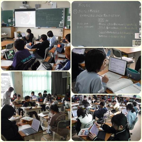 1組は理科の授業で、「寒くなると…」の単元を、動画やタブレット端末を利用して考えを深めていました。