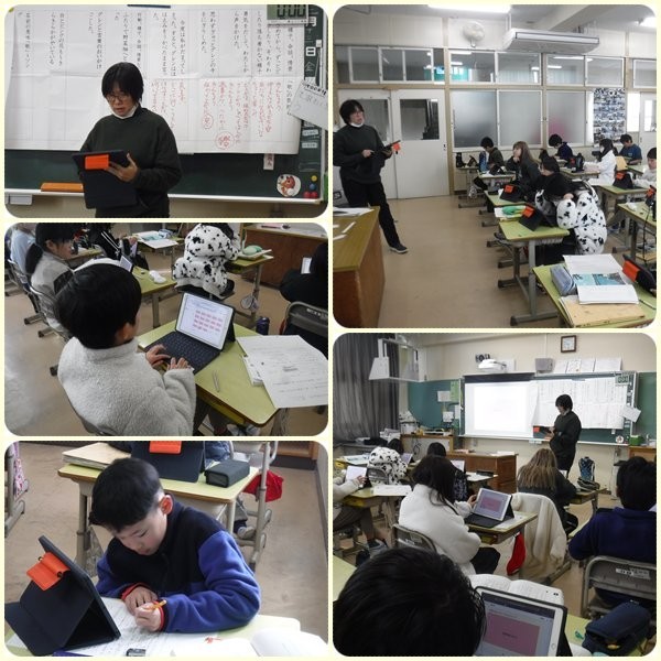 2組は国語の授業で、みんなの考えをタブレット端末を用いて共有していました。
