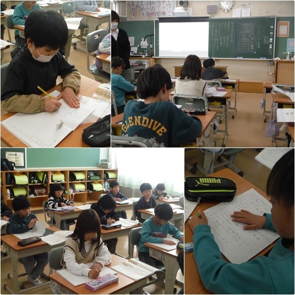 算数の授業では、学習単元はすべて学習したため、学びを深める内容に取り組んでいました。国語の授業では、1年間の出来事を思い出して文章にしていました。この時期になると、どの教科も学習のまとめが多くなります。