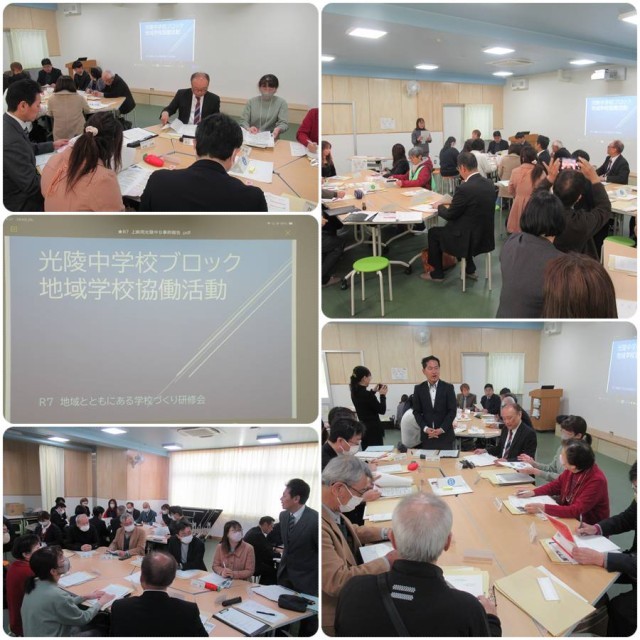 「保護者と地域、学校が協力して、子どもの健やかな成長につながることをしていこう」という趣旨で学校運営協議会を年に3回開催していますが、その3回目が本日、八幡小学校でありました。光陵中学校区の5小中特支学校の学校運営協議会が一堂に会し、それぞれの今年度の取り組みや反省、来年度への確認などを話し合いました。