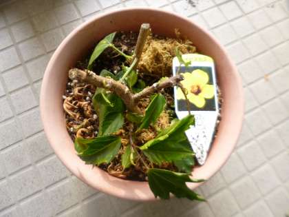 真夏の花の「ハイビスカス」は寒さに耐えて春を待ちます。