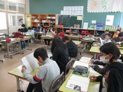 5年生の教室からです。国語の授業でした。辞書を使って語句を調べていました。