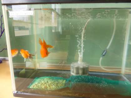 ハッピルームに金魚の水槽を設置しました。金魚は運気を上げるそうです。
