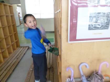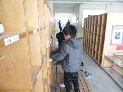 1人1人の靴箱の砂をとっています。