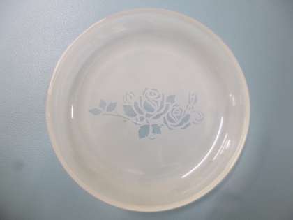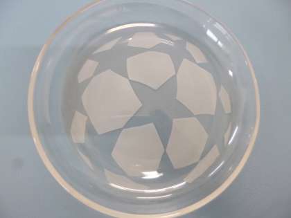 ガラスの皿やコップにアルミナを高圧スプレーガンで吹き付けます。特殊な糊がついているところにアルミナが残ります。
