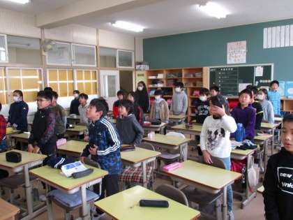 4年生の教室からです。美しい歌声が聞こえてきました。2分の1成人式で歌う歌を練習していました。