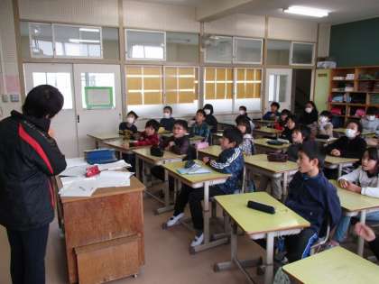 4年生の教室からです。外国語活動の授業でした。「Do you have a 〜?」と英会話を勉強していました。