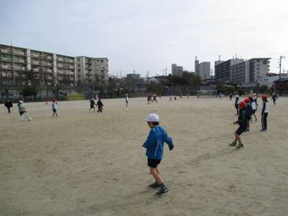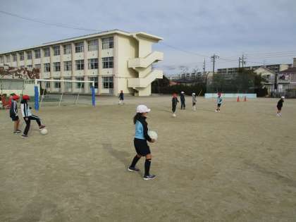 運動場からです。3年生が体育の授業をしていました。サッカーをしていました。