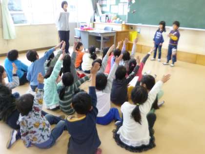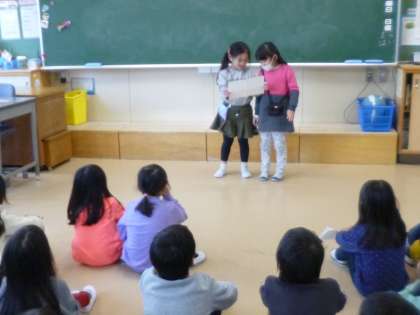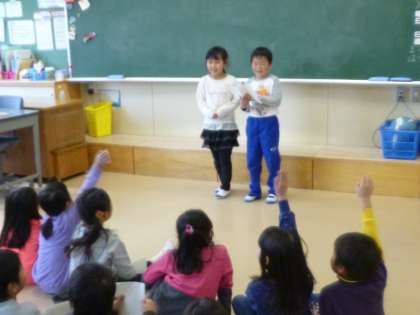 子どもたちが考えた「なぞなぞ」を出して皆が答えています。