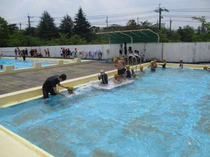 プールからです。2年生が水泳の授業をしていました。