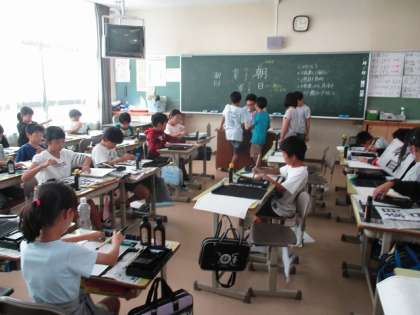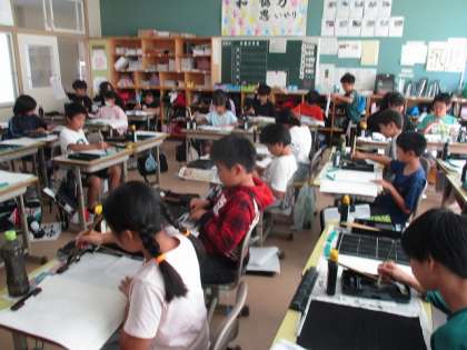 5年生の教室からです。書写の授業でした。毛筆でした。