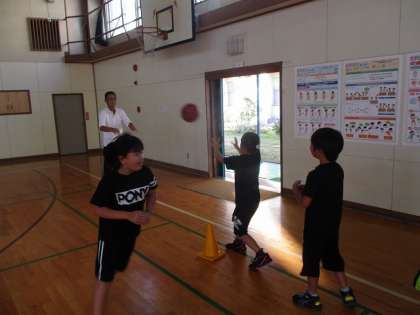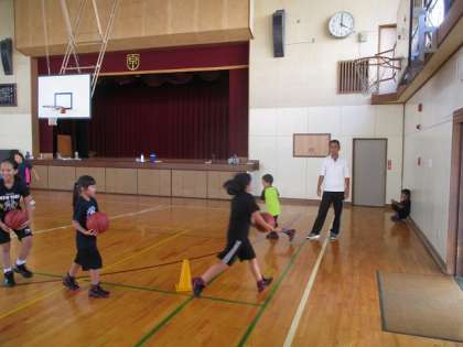 3・4年生の練習の様子です。現在男子部員が少なく困っています。バスケットをやってみませんか。
