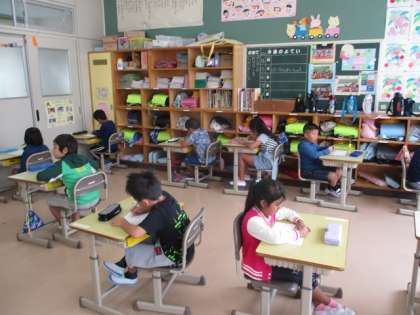 1年生の教室からです。国語の授業でした。漢字のテストをしていました。
