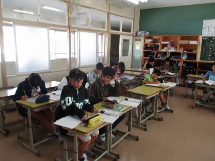 6年生の教室からです。算数の授業でした。少人数での授業で、復習問題を解いていました。