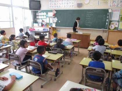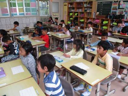 1年生の教室からです。生活科の授業でした。園児と遊ぶ計画を立てていました。