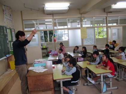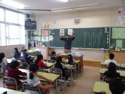 2年生の教室からです。外国語活動の授業でした。数字を英語で発音していました。