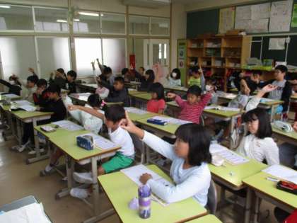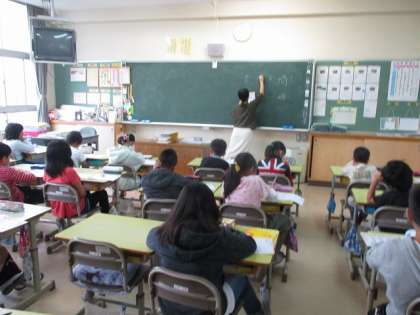4年生の教室からです。国語の授業でした。漢字の学習をしていました。