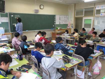 5年生の教室からです。社会科の授業でした。学習めあての確認をしていました。