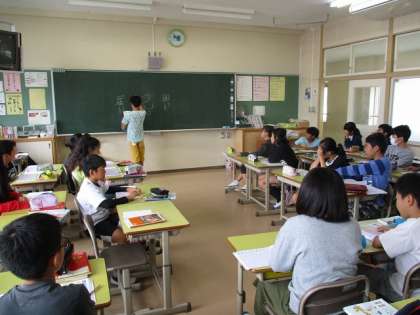 6年生の教室からです。国語の授業でした。漢字の学習をしていました。